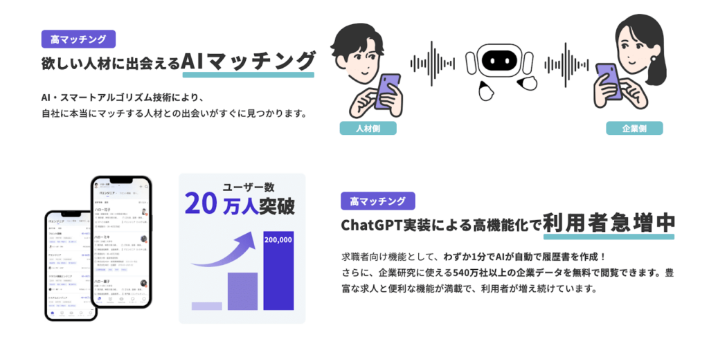 20万人以上のユーザーの中から、AIが貴社に合う候補者を迅速に推薦します。