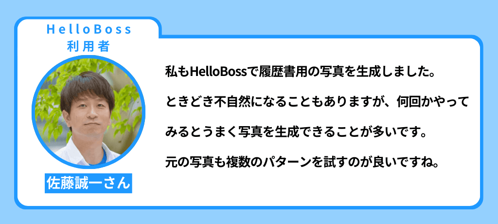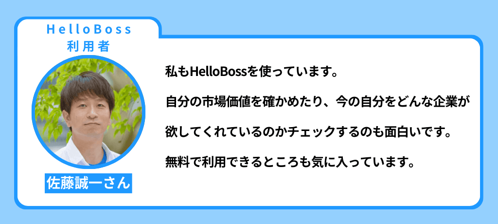 HelloBossユーザーの佐藤誠一さんも、何回か試してうまくいったと話してくれています。