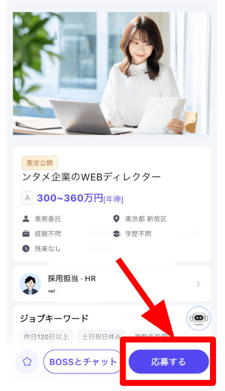 やり取りしながら納得できたら、そのまま応募も可能です。