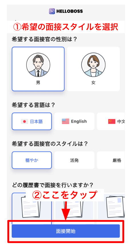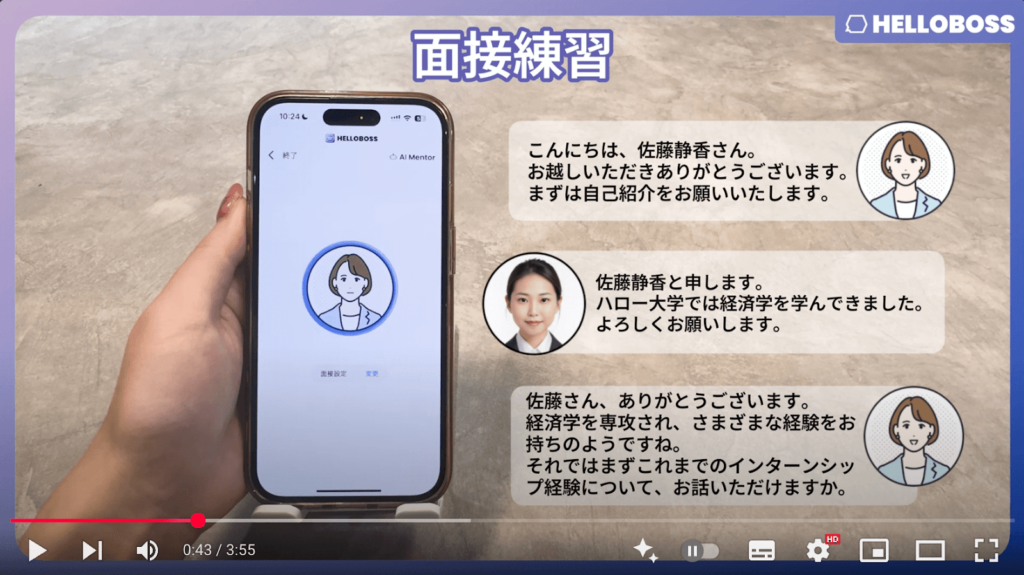 HelloBossのAIに面接の練習相手になってもらうことも可能です。
