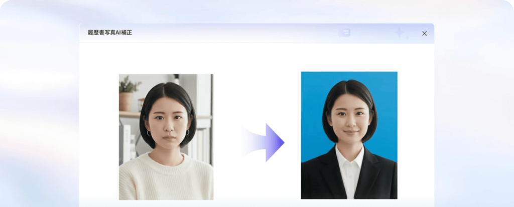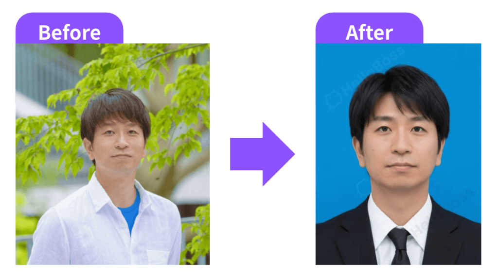 HelloBossは普段の写真を履歴書用の写真に変換する機能があります。
