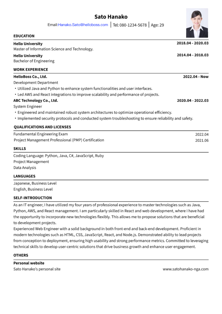 外資系企業への応募を検討している方は、HelloBossで英文履歴書を作成してみてください。