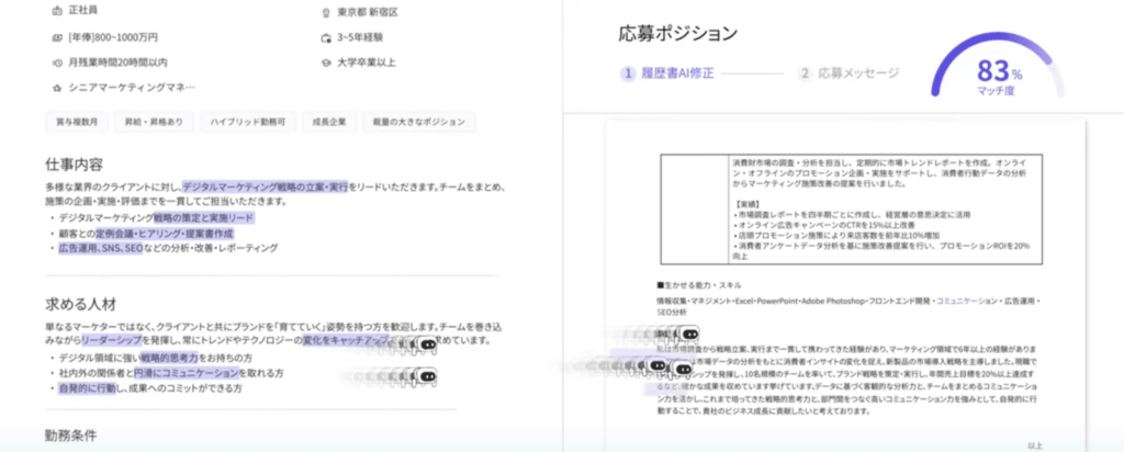 履歴書の改善案や面接対策など、自分では気づきにくい視点をAIが提示してくれるでしょう。