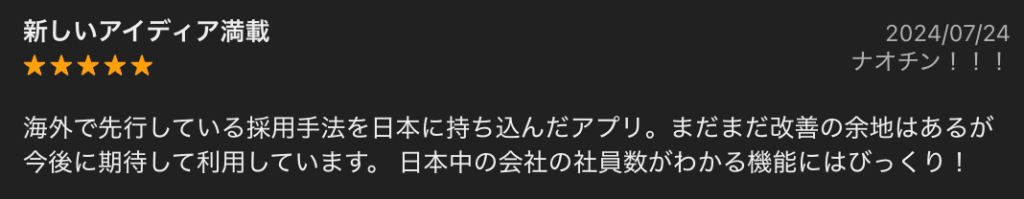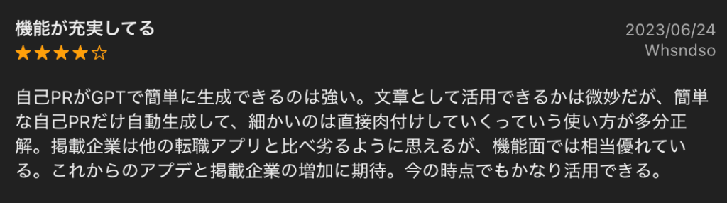 自分に合う求人を精度高く見つけられる推薦機能に、満足する意見も見られます。