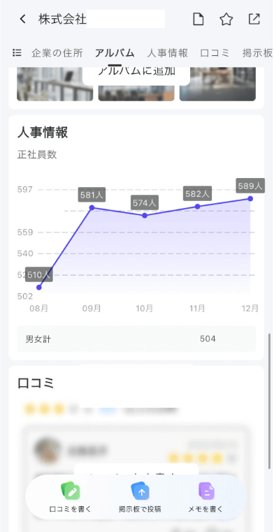 日本中の会社の社員数がわかる機能はびっくり