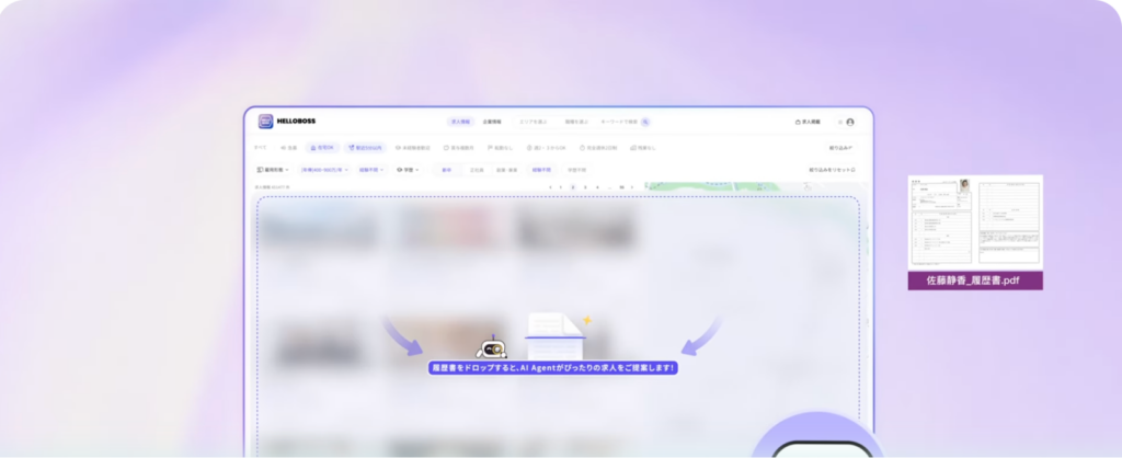 PDFの履歴書がある方は、それをアップロードするだけでHelloBossが情報を読み取ってくれます。