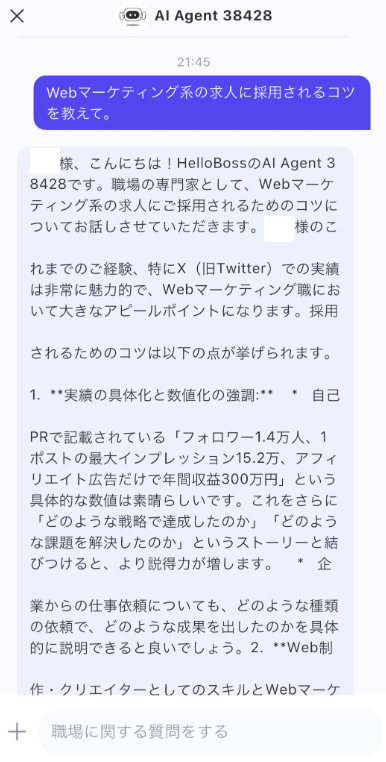 客観的な意見を取り入れて就職・転職活動したい方には、HelloBossのAIメンターが便利です。