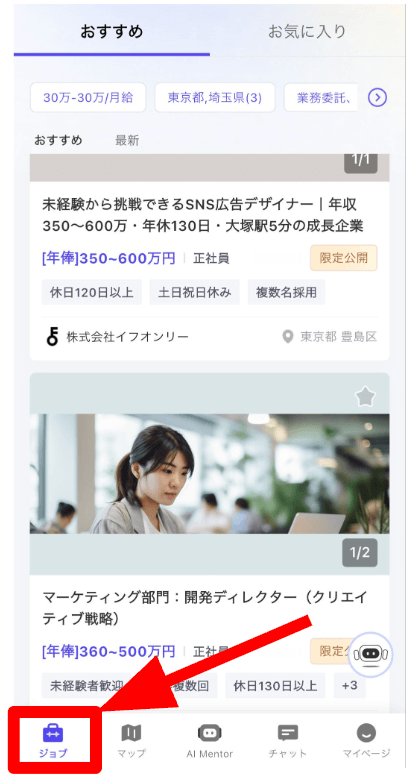 自分の希望や条件に合致する場合のみ、チャットで返信したり応募へ進んだりしてください。