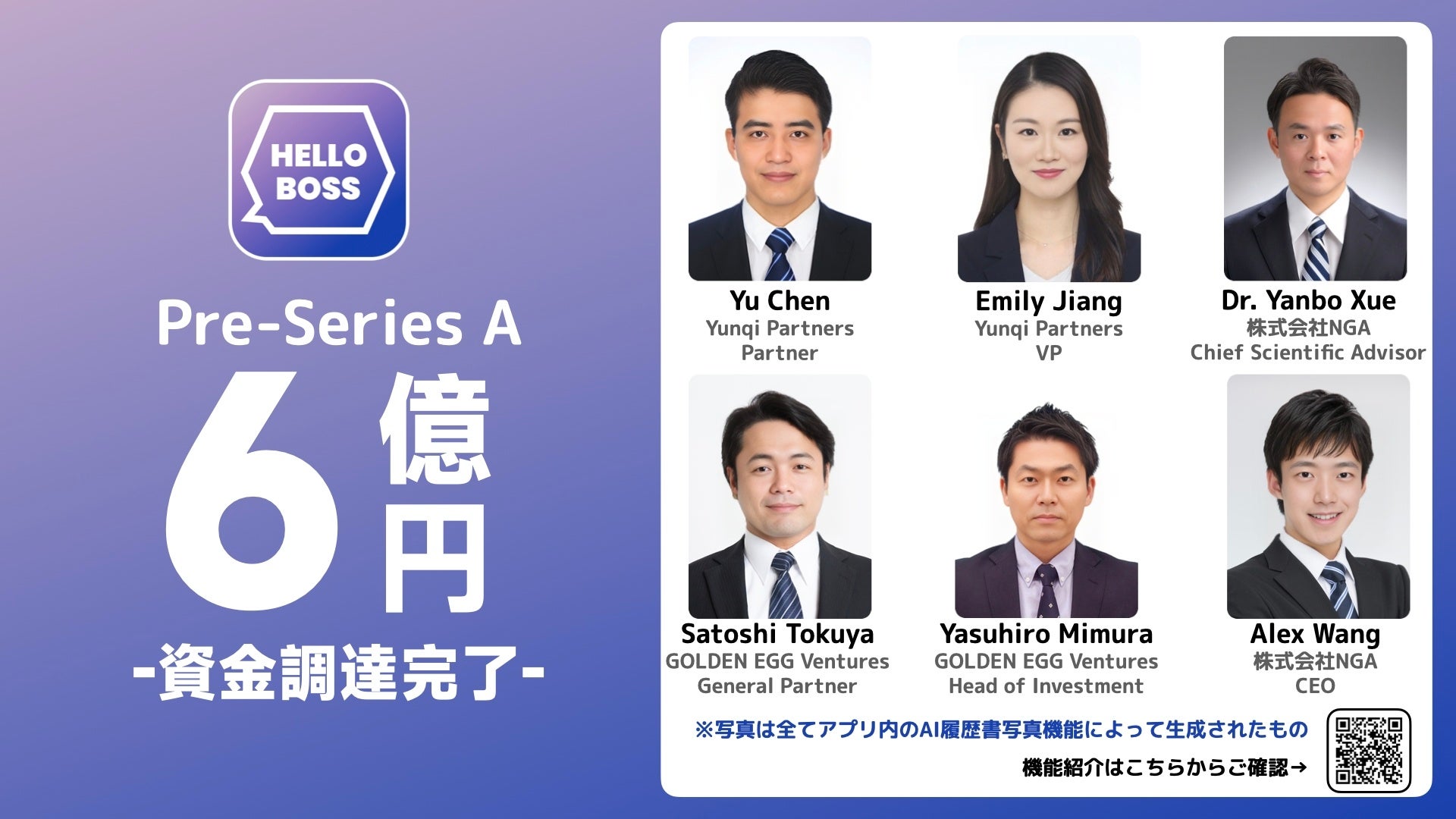 NGAはPre-AラウンドにてYunqi PartnersおよびGOLDEN EGG Venturesの2社から6億円の資金調達を完了しました。それに伴い、Yanbo Xue博士が最高科学顧問としてNGAのチームに加わることと、オフィスを新たに設けることを発表します。これからは第3世代AI採用サービス『HelloBoss』のAI技術開発と事業拡大に注力し、日本における人材の流動化をさらに促進することを目指します。様々な職業も絶賛採用中です!