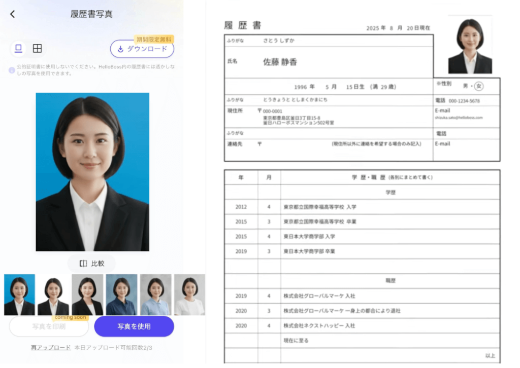履歴書や写真も無料で生成できるので、さっそくアプリをインストールしてみましょう!