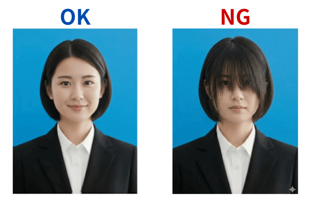 - 髪型は耳やおでこを出して明るい表情を見せる