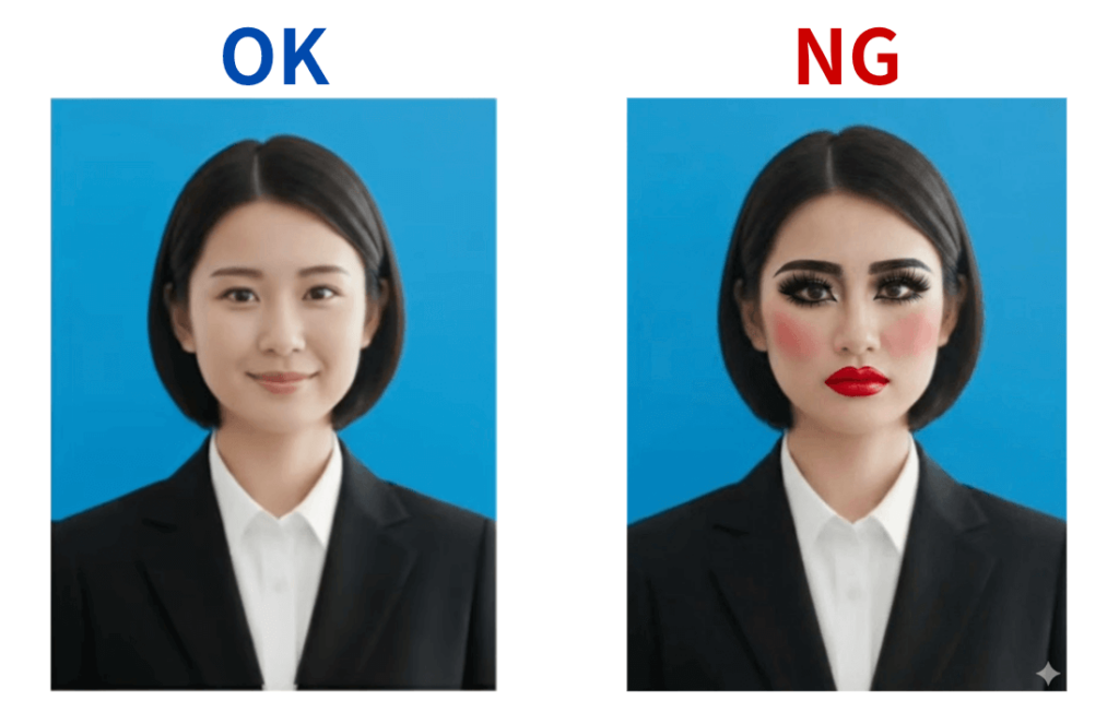 女性の証明写真では、服装だけでなくメイクや髪型も印象を大きく左右します。