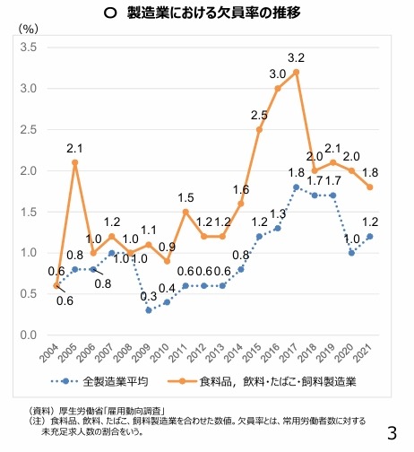 - 製造業平均を上回る欠員率の推移と深刻さ