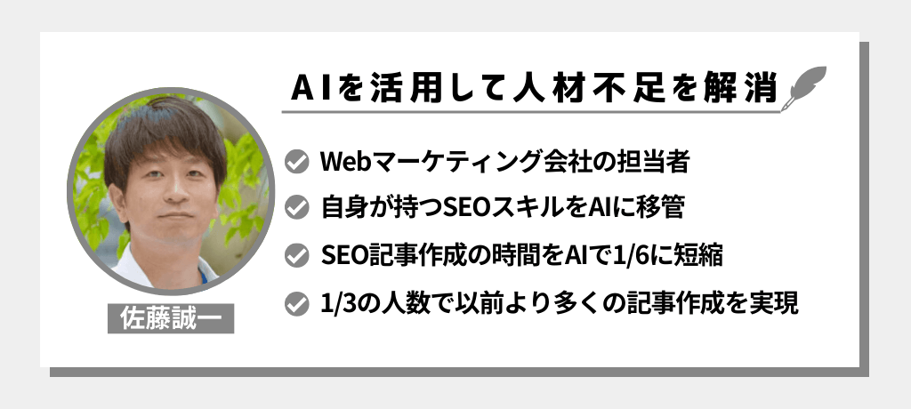 Webマーケティング会社で働く佐藤誠一さんは、自身のSEOスキルをAIに移管する仕組みを構築しました。