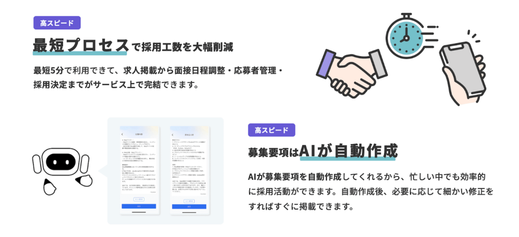 候補者とチャットでやり取りできるため返信率も高く、スピーディーな採用が可能です。
